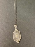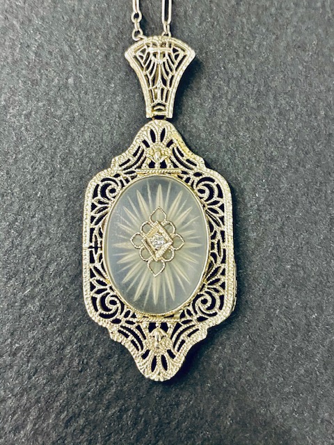 アールデコ 1920年代にフィリグリー細工とコンフォーガラス センターにダイヤを嵌め込んだ
