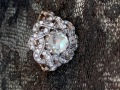 センター部分には大きなローズカットのダイヤ、その周りは編み目模様のように飾られた