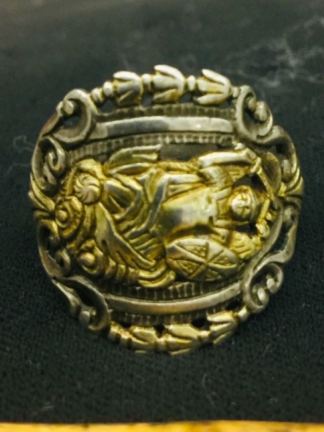 19世紀アイルランドの珍しい銀の指輪です。 騎士の姿が浮き彫りになっています。